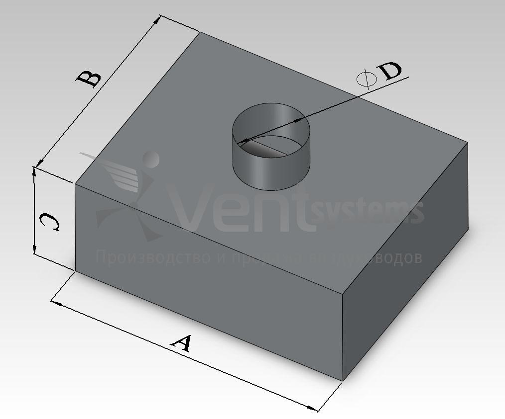 Прямоугольный стальной оцинкованный пленум с круглой верхней врезкой