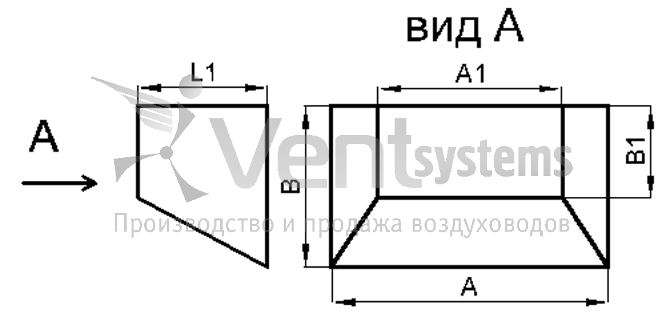 Прямоугольные воздуховоды Фасонные изделия Переход прямоугольное сечение на прямоугольное сечение (односторонний, тип 5)
